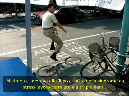 Dai servizi sociali è arrivato Mikimoto, lavorava alla Tepco, Fukushima, soffre della sindrome da stress lavoro-correlato. Non ha un bell’aspetto.