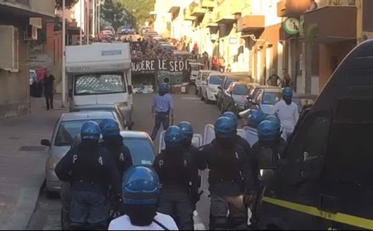 Che tristezza fenomenale m’è venuta quando ho visto più di un centinaio fra poliziotti, carabinieri, finanzieri e vigili blindare il mio quartiere a protezione della sede di Casa Pound, che fra fuochi d’artificio e tartine inaugurava la sua vita nella suburra. Hanno aspettato zitti zitti che la stagione fosse propizia, e in mezzo a rabbia e bordello, come molti anni fa, riemergono in periferia fra i poveracci intontiti e gli immigrati da scremare. Come a Ostia, incancrenita dalla mafia, si presenteranno coi pacchi di pasta e una promessa d’ordine, decenza e stoicismo. Qui da me riempiono il vuoto lasciato dalla sinistra di governo, che ha spostato la sede storica su un bel palazzo abbacinato dai riverberi del golfo. Ci sono entrato una volta per far lezione ai giovani rampanti sui casini del mondo arabo. Vedete la fotografia di Kennedy sul muro? Sapete quanti merdai ha fomentato? Non credo riceverò altri inviti. Nel giorno dell’inaugurazione ho incontrato anche i giovani rivoluzionari, i comunisti trascinati dall’avanguardia anarchica e incappucciata. Pronti allo scontro con lo stato fascista che protegge la recrudescenza fascista. Che tristezza fenomenale quando il tutto si è risolto con qualche logora canzone di protesta, una barricata di cassonetti e quattro fumogeni scagliati per sbaglio sulle macchine o i balconi. Un guappetto s’è diretto con incedere furioso e carburato di bestemmie vernacolari sulla trincea dei figli di Bakunin, per presentargli l’ipotesi di una mitragliata di calci in culo. Poco dopo si sono ritirati, hanno levato i passamontagna e inserito “solidarietà per gli immigrati” fra le loro corali tiritere. La sbirraglia s’è rilassata, in tempo per la partita delle 20,30. I giornalisti, tutto il tempo dietro la linea dei celerini, pure. Nelle cronache del giorno dopo ho ritrovato le cose passate a un collega, raccolte nel movimento. Nella foto sono quella figurina perplessa a destra, con la bisaccia di sempre, nel mezzo di sempre. Che scenario miserabile fra le case dove è nato Bellas mariposas.