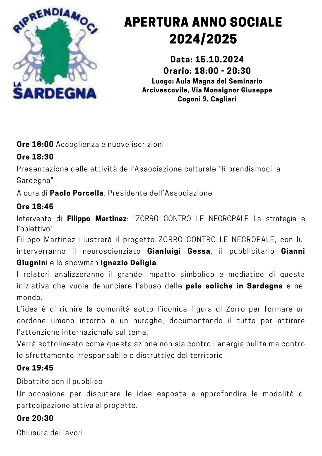 Domani, martedì, alle 18:30, nell’aula magna del Seminario Arcivescovile di Cagliari in via Monsignor Cogoni 9 verrà presentato un piano per poter remare tutti insieme opponendoci così a questo ennesimo ritorno a un passato di abusi e ingiustizie con un’“arma” efficacissima che i nostri nemici non possono aver previsto: Zorro.