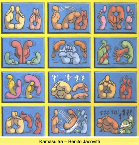 Sarà colpa anche qui della globalizzazione ma si sta usando specie per le scritte sui muri “fuck” che li raggruppa tutti, che corrisponde all’italiano scopare, che permette una fantasia di doppi sensi. Come sa chi ha fatto traduzioni dal greco una sfumatura è più giusta o più sbagliata di un’altra. Noi a seconda della predisposizione, del contesto, e dell’incontro potevamo disporre di tanti termini. La famosa supremazia del connotato. Volta a volta potevamo secondo l’estro e il contesto: spirire, scopare, chiavare (che non è il dantesco chiovare), coddai, montare, coprire, copulare, c’era anche chi una donna se la faceva, come se fosse un kit, chi montava o sportivamente saltava, animalescamente ingroppava, la impregnava. Veniva descritto l’atto, il risultato, perché c’è l’atto, l’atto in sé e per sé e la comunicazione di esso. Si usava chiamarlo anche la prova d’amore, e di poetico aveva ben poco, anche se ha favorito i matrimoni in giovane età.